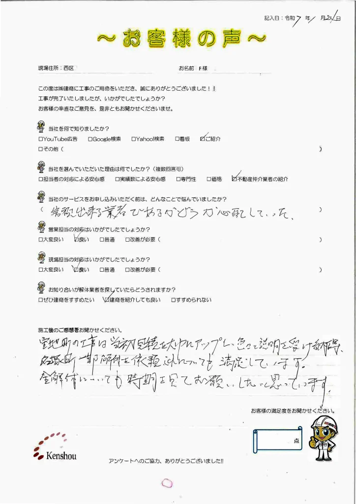 名古屋市西区 F様室地町の工事は当初の見積りを大幅にアップしたが、色々説明を受け納得。