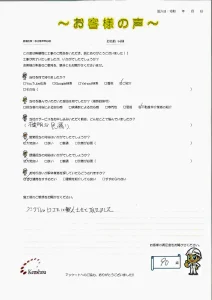 近隣からのクレームがなかったことがよかったです。ありがとうございました